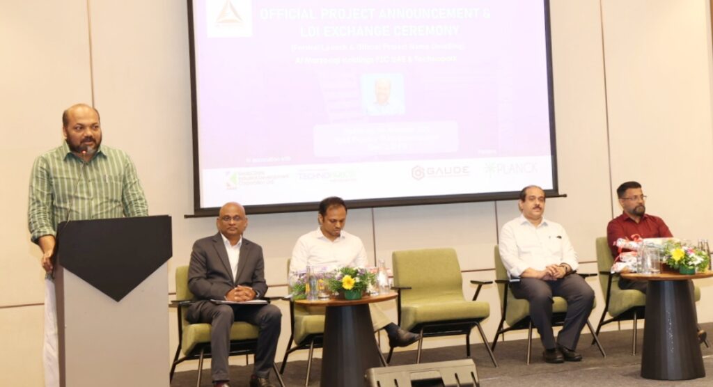 The Letter of Intent (LoI) of the landmark Foreign Direct Investment (FDI) project was exchanged between Mr. Ajish Baladevan, CEO, Al Marzooqi Tech Park, and Col Sanjeev Nair (Retd), Technopark CEO, in the presence of Minister for Industries, Law and Coir Shri P Rajeeve, Special Secretary (IT) Shri Seeram Sambasiva Rao, IAS, Shri A.P.M. Mohammed Hanish, IAS, Principal Secretary (Industries and Commerce) at Thiruvananthapuram, on November 05, 2025.